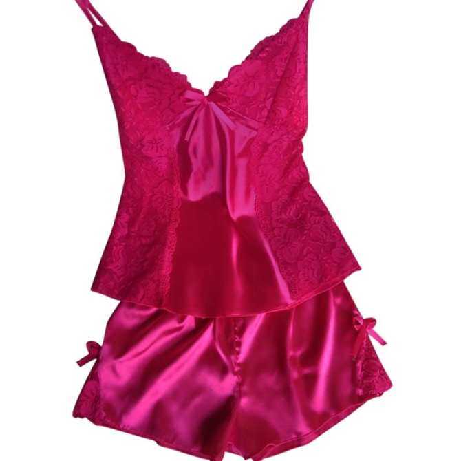 ราคาถูก ผู้หญิงชุดนอนเซ็กซี่ Nightgown ผ้าไหมซาติน Babydoll Lace ชุดคลุมนอนกระโปรงชุดเดรสสีชมพู ราคา 384 บาท ข้อมูล!!!